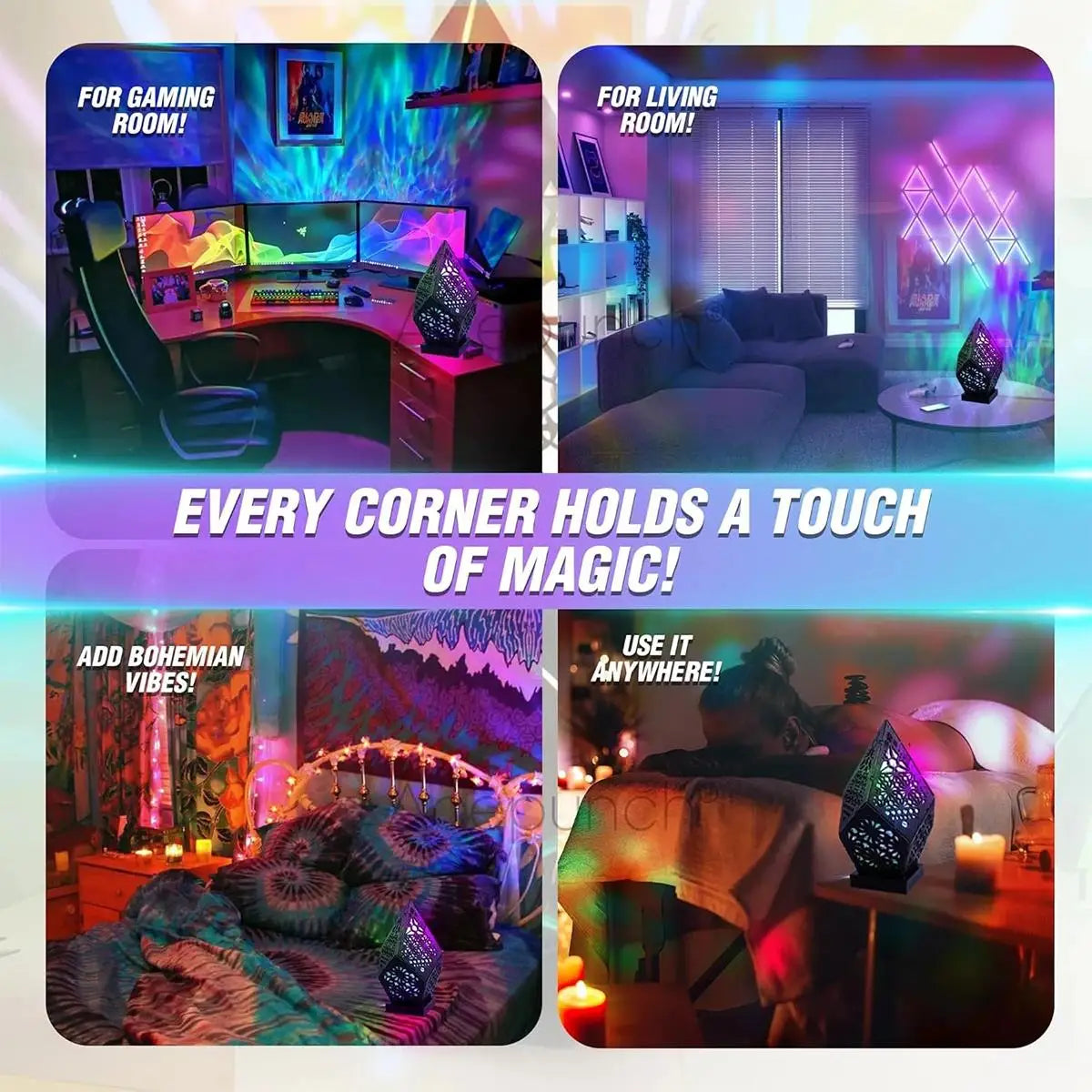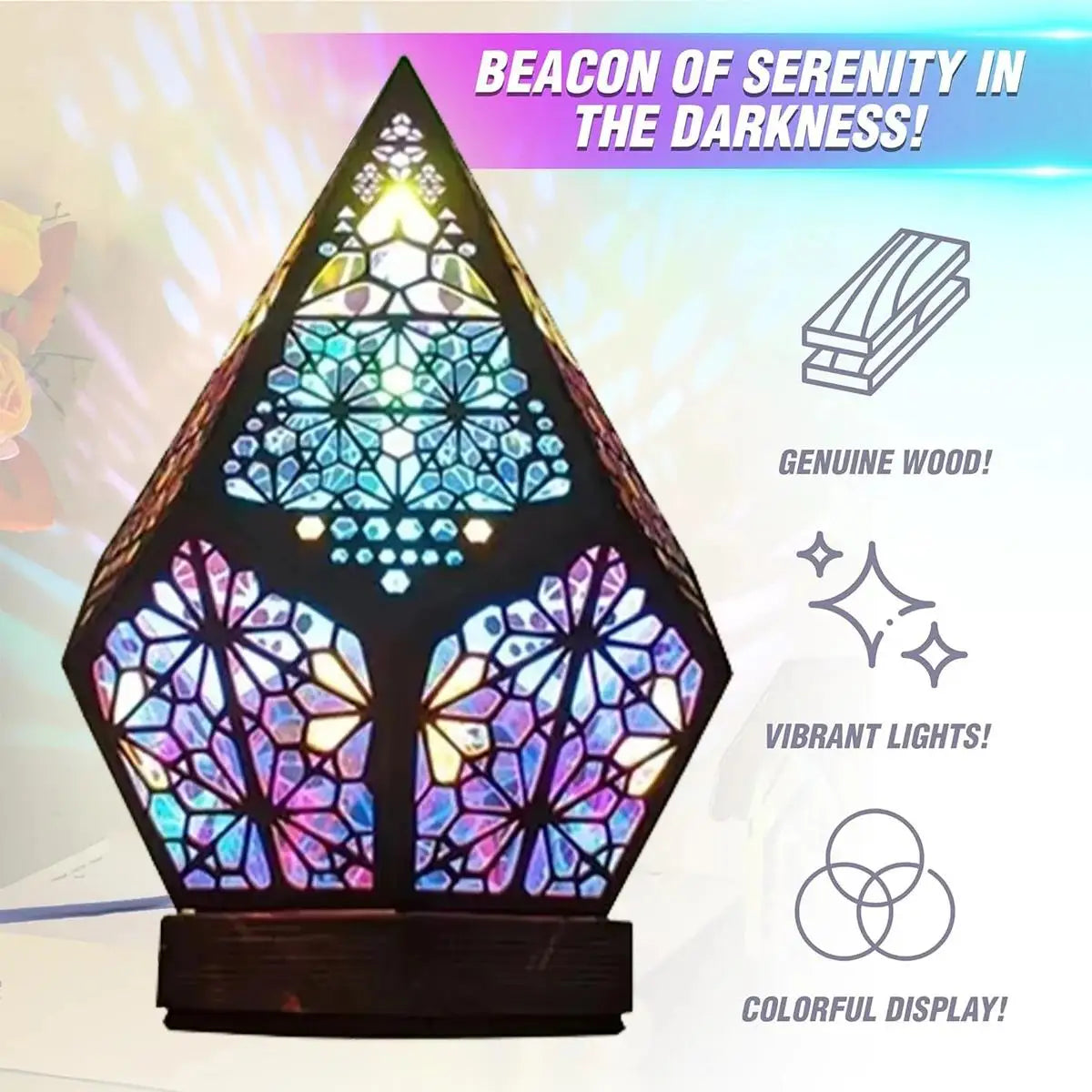 Its diamond-shaped, three-dimensional pattern bursts to life when the LED shines, captivating every angle and sparking vibrant energy and fills your space with colorful gradient waves and dynamic patterns.