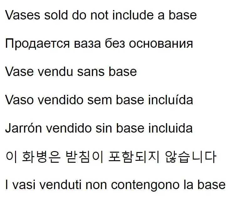 - Vases: Vases sold do not include a base