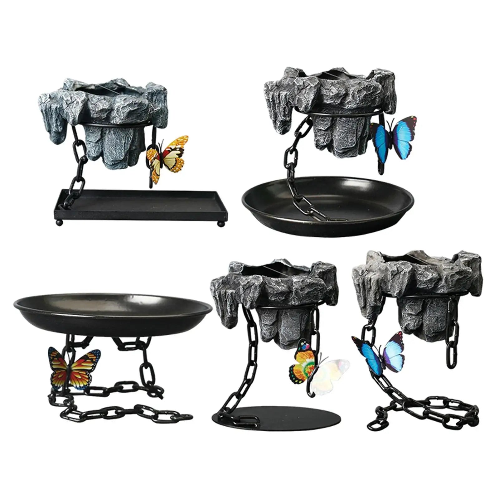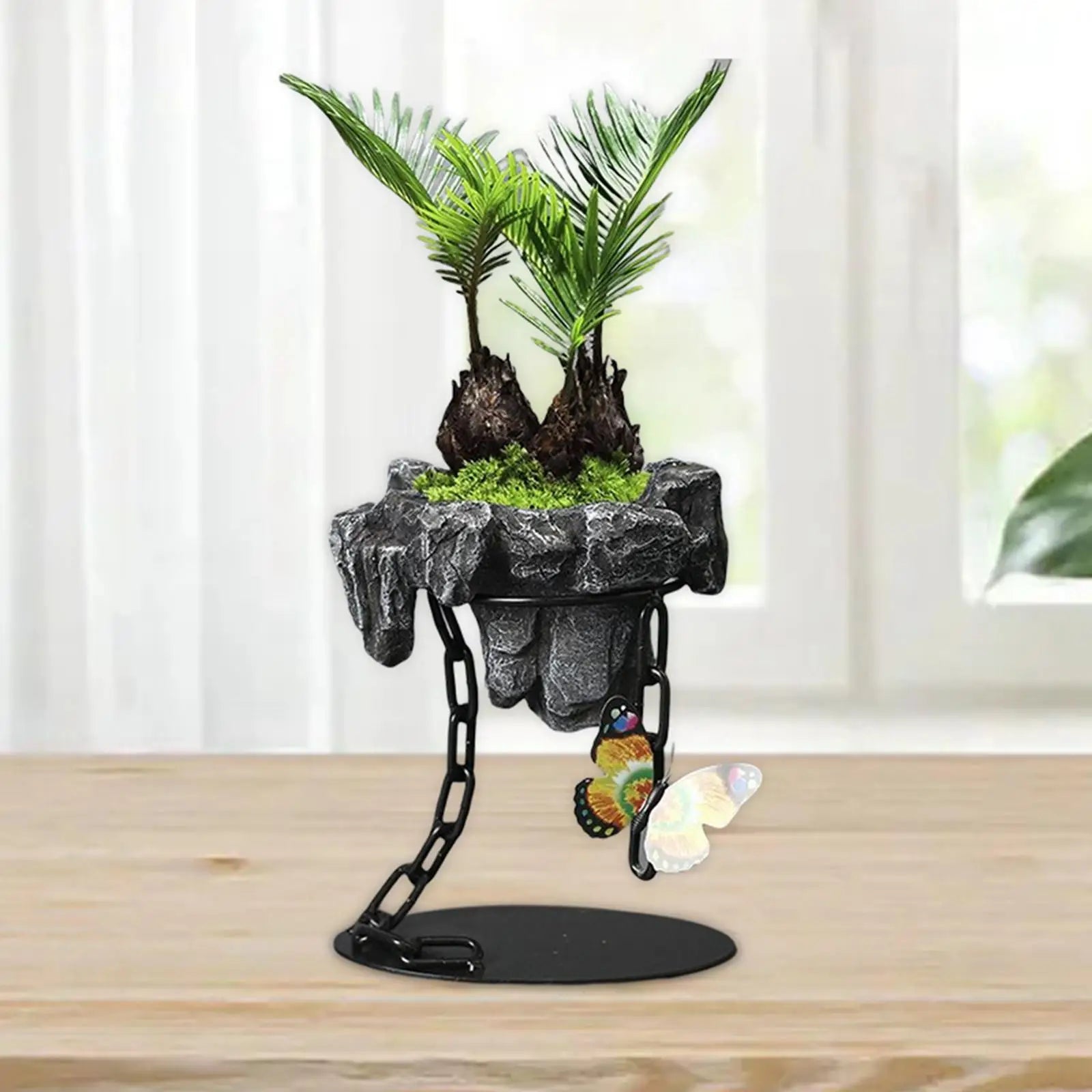 These Rockery Decoration Plant Pots are tailored for small indoor bonsai, succulents, orchids, and other petite plants, offering a unique floating style "suspended" by a decorative iron chain twine accented with an elegant butterfly.